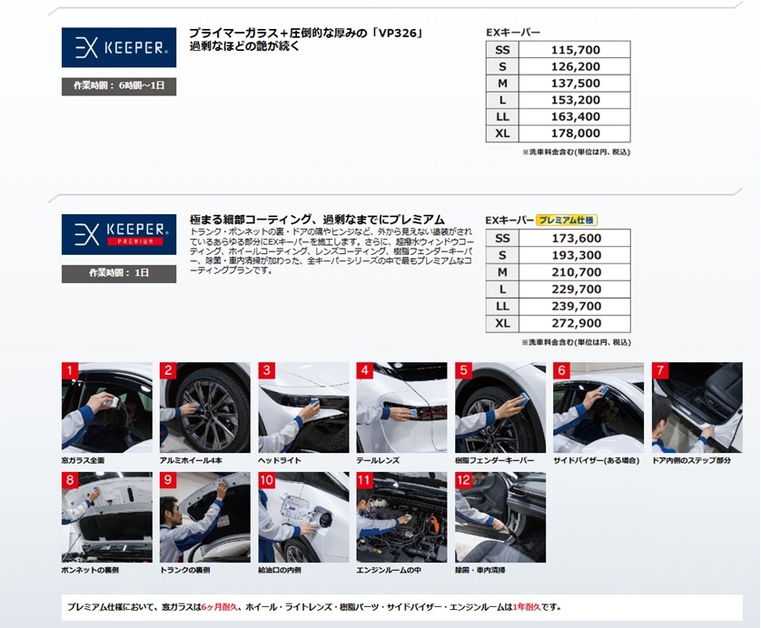コーティング施工に伴い、お客様のご希望の時間帯が