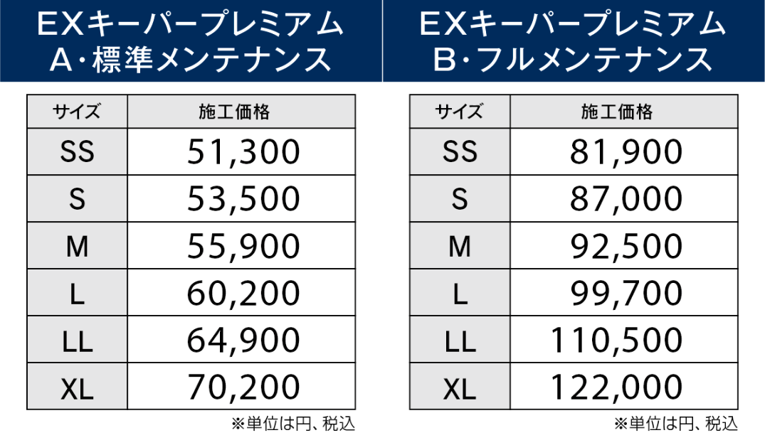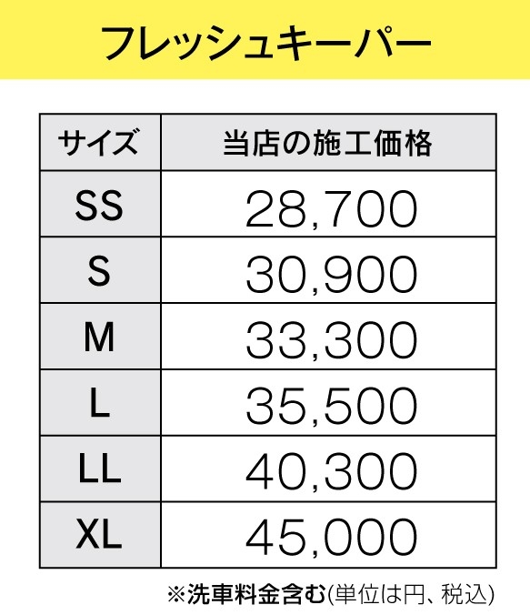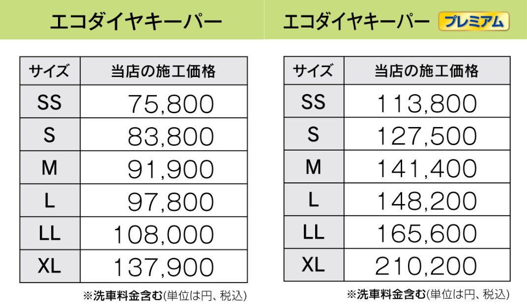 車種サイズにより施工価格が変わります。