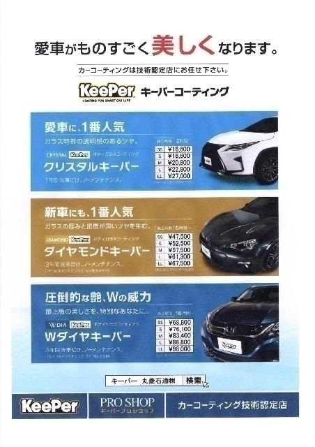 当店ではキーパーコーティング施工1級資格者が2名、2級資格者2名在籍しており、いついかなる日でもパーフェクトにお客様のご要望にお応えいたします! 当店では鉄粉、水垢取り、室内清掃は全てコーティング価格に含まれており超お得な価格となっております!(=゚ω゚)b お気軽に当店または当店スタッフにお問い合わせください!