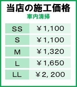 シート、マット、フロアの掃除機清掃と、内窓の全面清掃、ダッシュボード周りの拭き掃除がパッケージになっています。