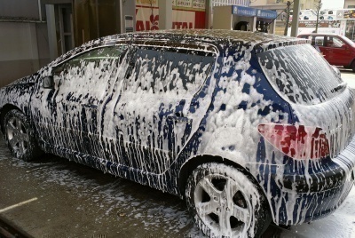 純水手洗い洗車はモコモコの泡と100%ムートンで出来た