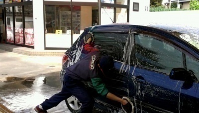 ラ・モップを使い最高の洗車を提供するために訓練された