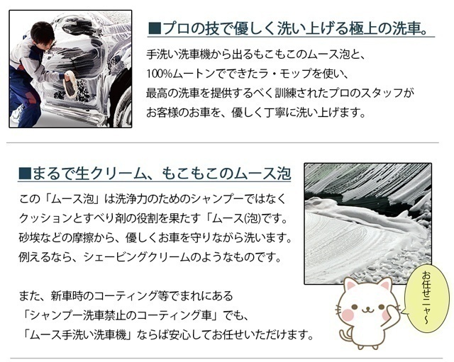 当店は、手洗い洗車、コーティング・お車のメンテナンスの