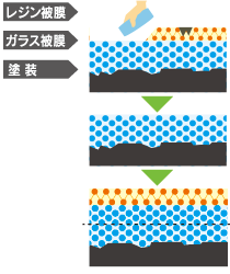 ●下部のガラス被膜を整え、表面のレジン被膜を入れ替えます。