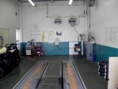 運輸局指定整備工場車両検査ラインです。要は車検場です