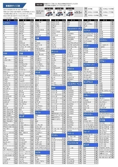 車種別サイズ表