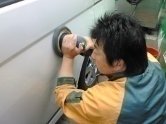 PURE KeePer(ポリッシャー仕上げ)の施工作業風景。