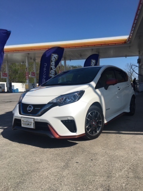 日産ノートのニスモe-powerにエコプラスダイヤモンドキーパーを施工させていただきました(^^)V ニスモタイプだと顔つきもガラッと変わってスポーテイでかっこいいっす!!