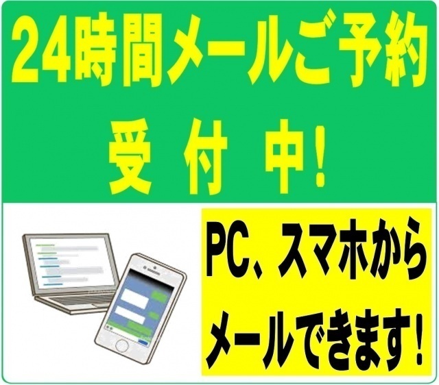 A:ご予約なしでも、当日のご予約でも大歓迎です。 ご予定の時間での作業を、一度店舗にご相談下さい! TEL:029-241-0824 ※お問い合わせの際は、「キーパーのページを見た」とお伝え頂くとスムーズです。