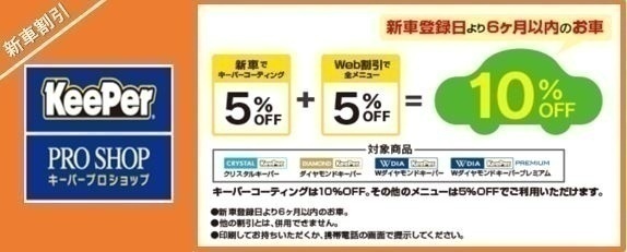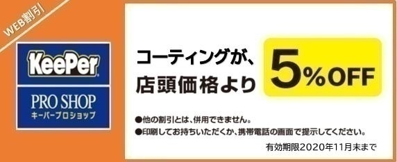 本クーポンのご利用により、コーティング施工が店頭価格より5%OFF(新車10%OFF)となります。