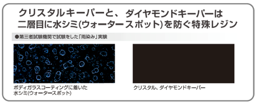 Q クリスタルキーパーの予約をしたいんだけど、今日出来ますか? A 当日のご予約でも大歓迎です。ご予定の時間を一度店舗にお問い合わせ下さい。 Q ダイヤモンドキーパーを予約したいんだけど、今日出来ますか? A 当日施工可能です。下地処理からコーティング被膜定着乾燥時間等で6時間以上お車をお預かり致します。ボディー状態によってはお時間を更に頂く場合や、予約状況もございますので事前にお問い合わせ下さい。 Q コーティング施工の間、代車は用意してもらえますか A 代車利用は事前に問い合わせをお願い致します。出払っている場合は送迎致します。ご家族かご友人と一緒に来店されてお車を預けられる事も可能です。 Q コーティング施工後の手入れはどうすればいいですか? A 通常の水洗い洗車、シャンプー洗車でOKです。洗車機での洗車も問題ありません。洗った後は拭き上げをして下さい。水道水には、ミネラルが多く含まれる為、乾くと水シミの原因になります。(雨は水道水や井戸水に比べミネラル分は非常に少ない為「雨」が降る度に拭かなくても問題は全くありません。)効果をしっかり発揮する為にも、シャンプーを使う場合は、コーティング剤やコンパウンドの入っていないものをご使用下さい。(鳥のフン、樹液、花粉が付いた場合は、なるべく早めの洗車をお願いします。) Q コーティングした後は、水に濡らさないほうがいいですか? A 水に濡れても問題ありません。作業中に必要な乾燥時間などは含まれております。キーパーコーティングは施工完了後、例えば雨の中お帰りでも効果が変わる事はありませんのでご安心下さい。 Q 予約当日の天気予報が雨だけど、そんな日にコーティングして影響はないですか? A コーティング作業は屋根のある専用ブースかピットで行いますので、雨の日の施工も全く問題ございません。施工が終わって雨の中のお帰りでも、品質が変わる事はございませんので、ご安心下さい。 Q 自分の車には、何のコーティングがピッタリか分からない。果たしてコーティングが効いているか分からないし。 A 私達にお任せ下さい! ご一緒にお車を見ながら最適なコースをご案内させて頂きます。お気軽にご相談下さいませ。 Q 以前ダイヤモンドキーパー、クリスタルキーパーをした事があるが、半年もしない内に一部の水弾きが悪くなった。どうして? A 他社ガラスコーティング全般にも言える事ですが、原因は『ミネラル膜の蓄積』です。雨水、水道水、地下水、泥水にはミネラル成分が有りますが、乾いたり、拭いたりして水分が無くなっても透明のミネラル膜はコーティング被膜の上に覆いかぶさった状態になり、コーティング被膜が埋もれてしまい、ミネラルは水を弾かないので部分的に弾かない箇所が出てきます。(天井・ボンネット・トランク等の上面が多いです) 解決方法としては、他社コーティングですと専用のメンテナンスクリーナーかコンディショナーを使用しますが、ダイヤモンドキーパー・クリスタルキーパー施工車は手洗い洗車時に『ミネラル取り』と申して頂くと洗車拭き上げと並行しながら水を弾かなくさせているミネラル膜を除去出来ます。 価格は手洗い洗車に+500円ですが、アフターメンテナンスとして当店ではダイヤモンド、クリスタルキーパーを施工されたお客様へ定期的にミネラル取り洗車無料のご案内を行っております。 Q 支払いは、カードも使えますか? A 各種クレジットもご利用頂けます。 Tポイントも貯まります。お会計時にTカードをご提示下さい。 ※一部対象外カード有