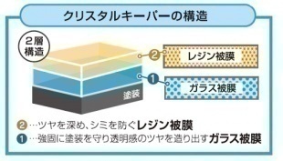 ガラス被膜(クリスタルキーパーと同じ厚み)+エコレジン被膜の2層構造です。