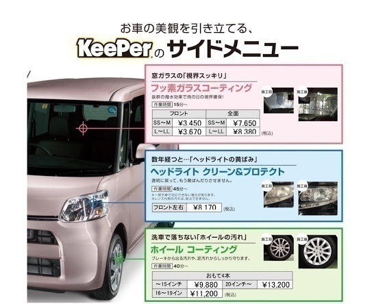 Aキーパーコーティング各種を取り扱っております。ご要望に応じて最適なものをご提案させていただきます。