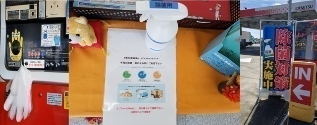 敷地内全て皆様が触れる箇所はこまめに除菌をし給油所には手袋も