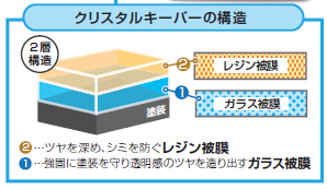 「ECOプラスダイヤモンドキーパー」はベストセラー商品のダイヤモン ドキーパー」の表面に、従来の『レジン2』の代わりに、新開発のケミカル『ECOプラスレジン』を施工した、雨が降れば洗車をしたようにキレイに なる効果を備えた新感覚の商品です。