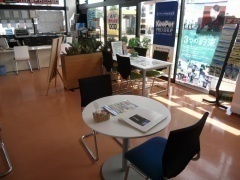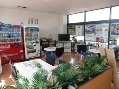 おしゃれなサービスルームで、洗車やコーティング以外のオイル交換等の作業時にもくつろげるスペースになっています。