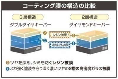 ○ガラスの層がダイヤモンドキーパーの2倍あります。