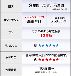 ○ガラス層が2倍あるのでツヤや、防汚能力も強化されています。
