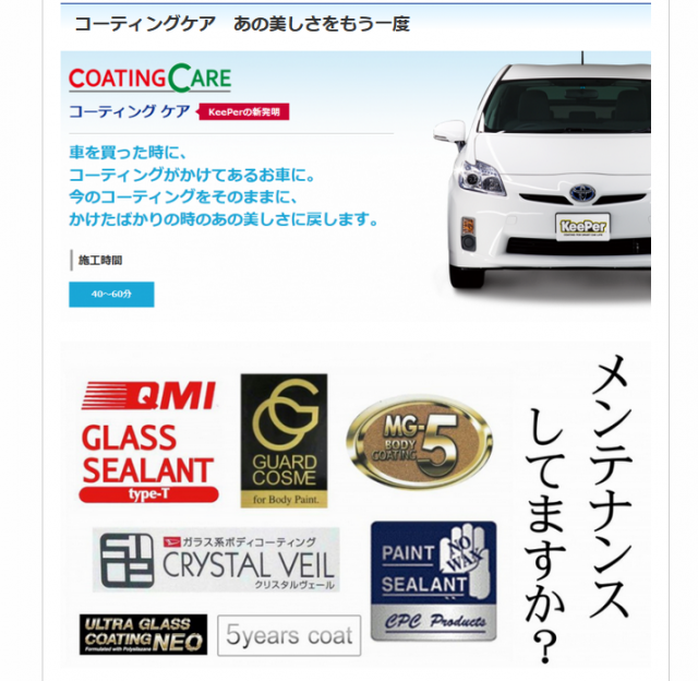 コーティングのお客様には代車を準備してます