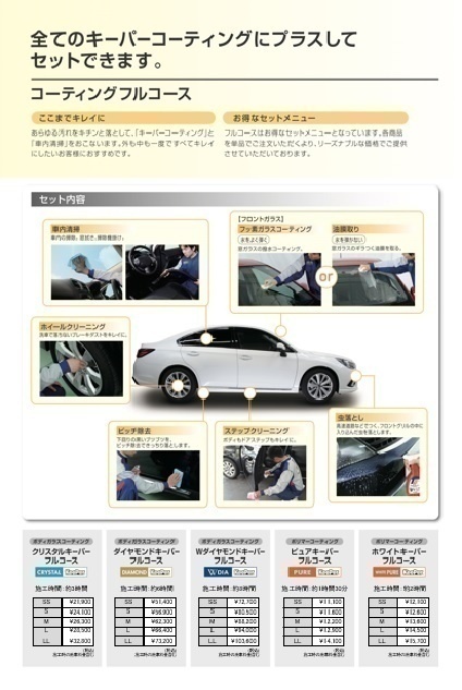 ダイヤモンドキーパーは、『ガラス・レジン』の二重構造ですが、ダブルダイヤは、『ガラス・ガラス・レジン』の三層構造でツヤと防汚能力も強化された被膜を形成します。