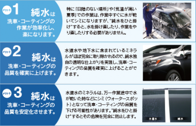当店のコーティング・手洗い洗車は純水を使用して仕上げます