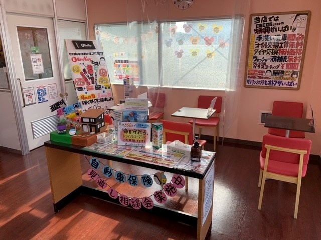 当店では、給油をはじめ、洗車から日常のお車のメンテナンス・車検・保険・板金塗装・カーリース等、地域のお客様のあらゆるお困りごとに対応出来るよう、国家資格整備士・コーティング技術認定スタッフが常駐するサービスステーションです。