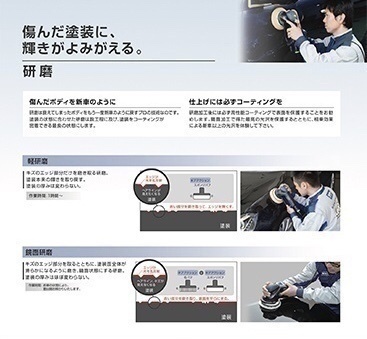 今回ご紹介したものは、小キズを取り、塗装面を滑らかにし、鏡のようなツヤを出す鏡面研磨ですが、他にもキズのエッジ部分だけを取りツヤを出す、細密研磨もメニューにございます。細密研磨+コーティングでも、仕上がりは普通にコーティングをしたものと比べると全く違います。特に年数の経過したお車には細密研磨、鏡面研磨はお勧めです。是非お試しください。