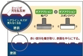 キズのエッジ部分を取るとともに、塗装面全体が滑らかになるように磨き、