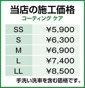 ■青空駐車と屋内保管されている車とではコーティングの効いている期間も違います。キレイ好きな方と汚れても気にならない方の感覚でも コーティングが効いているかどうかの判断基準が違ってきます。膜厚を測る機器や光沢計などもありますが、そのような機器にたよらなくて も車のオーナー様が「キレイにしたい。」「コーティングが効いている気がしない」と感じられるのであれば再コーティングされる事をお勧 めします。