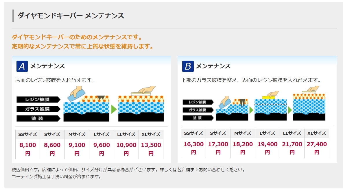 ダブルダイヤキーパーは、 高密度ガラス被膜だけでも2層、 キチンと硬化させながら施工します。 (ガラス、ガラス、レジン)の3層構造です。