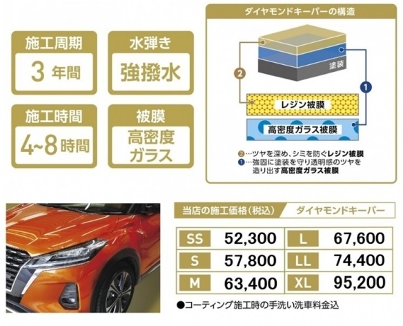 ※5年耐久のダイヤモンドキーパーは1年ごとの