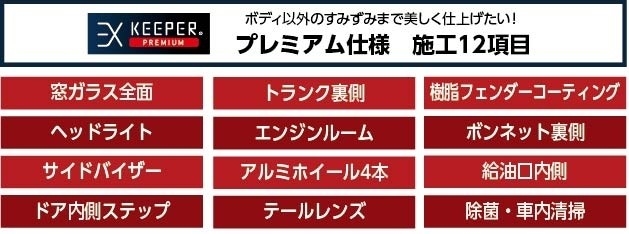 当店がお取り扱いしているキーパーコーティングメニューは、