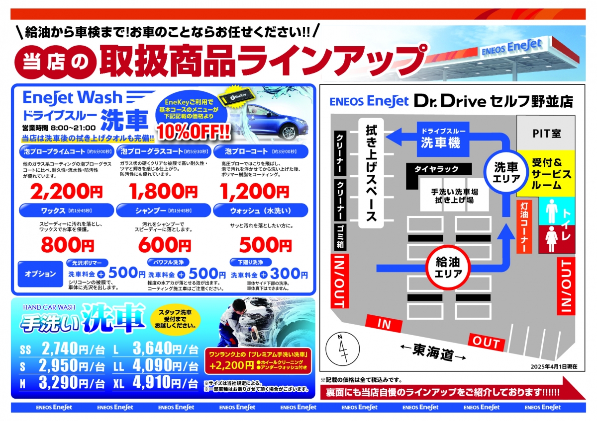 カーコーティングや手洗い洗車、ドライブスルー洗車機完備!