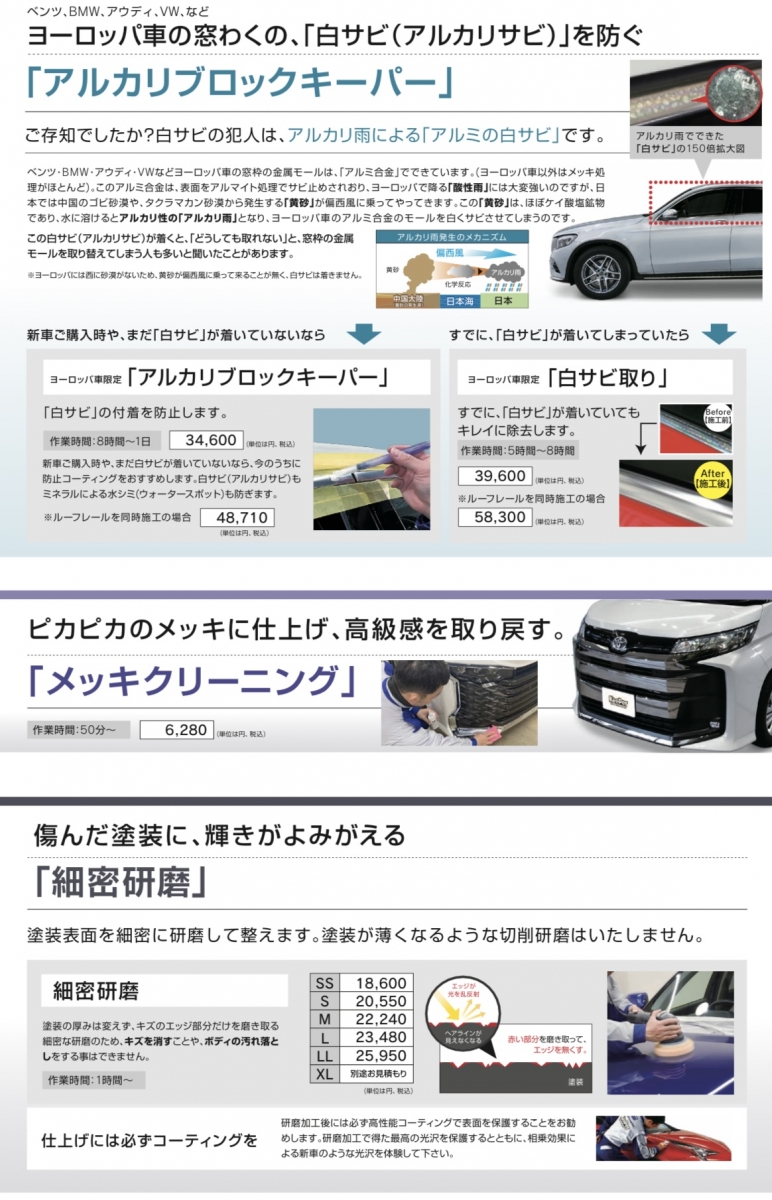 最新の設備・道具・ケミカルを使用し、塗装を傷めない理論をもとにサービスを提供しています。