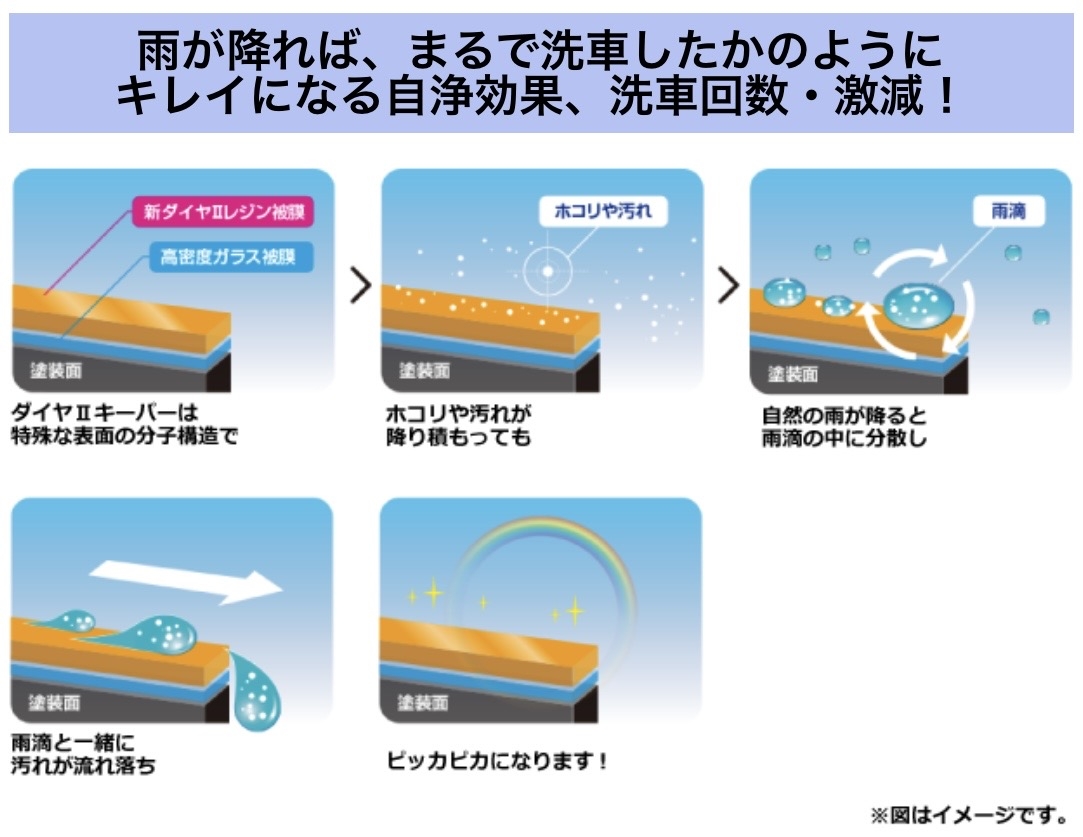 自然の雨で汚れが落ちる効果 深いツヤを生む【高密度ガラス被膜】