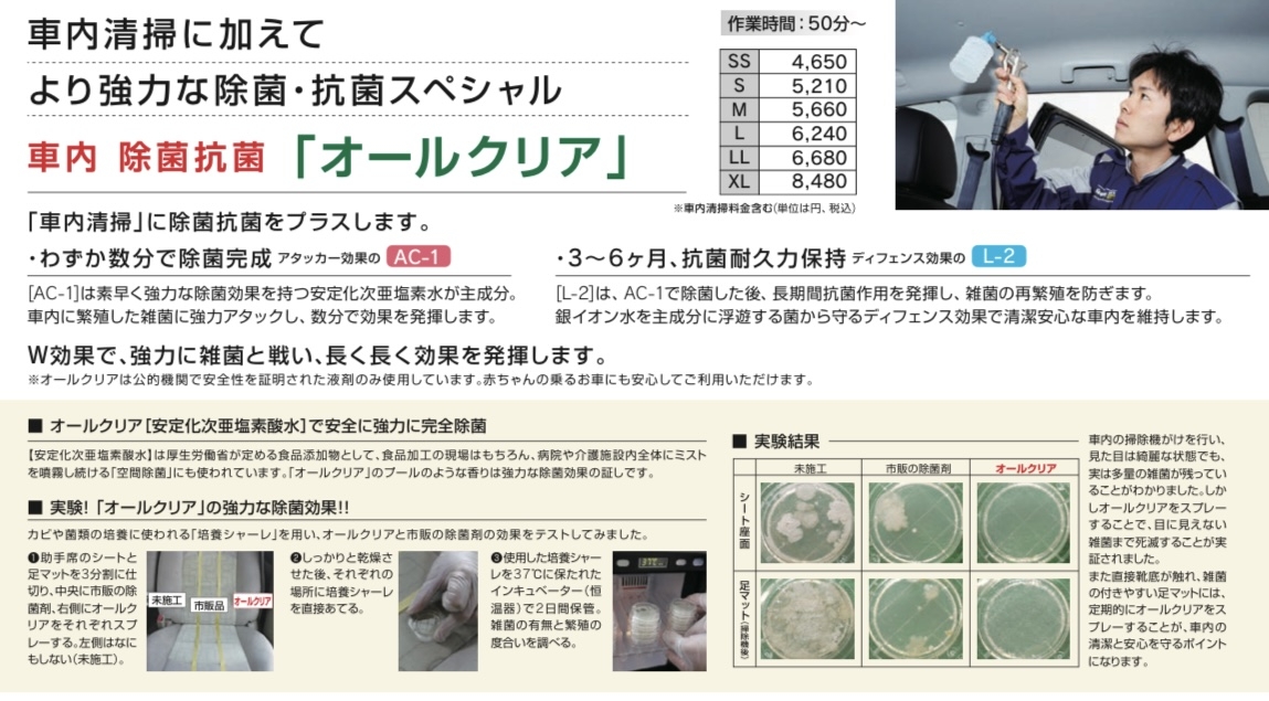 ※XLサイズの料金については店舗にご確認の程お願いします。