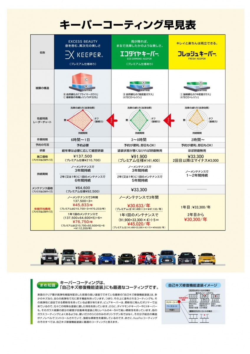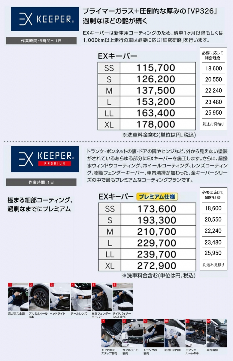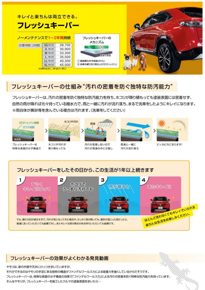 ・お車の新車時の美しさを長くキープ致します。