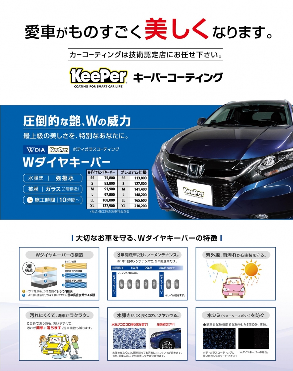 ダイヤモンドキーパーとダブルダイヤモンドキーパーはメンテナンスをせず、洗車だけで、3年間持続目安のプランと