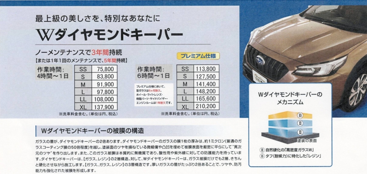 ダイヤモンドキーパーは独特のガラス皮膜と特殊なレジン皮膜の二重皮膜で出来ています。