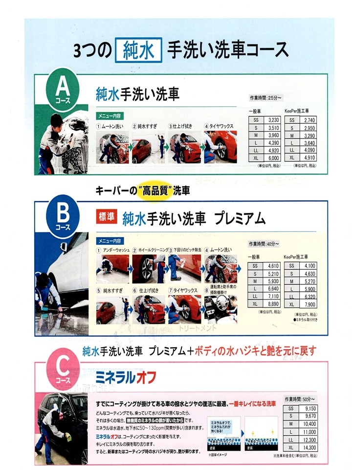 『純水手洗い洗車』3コースを