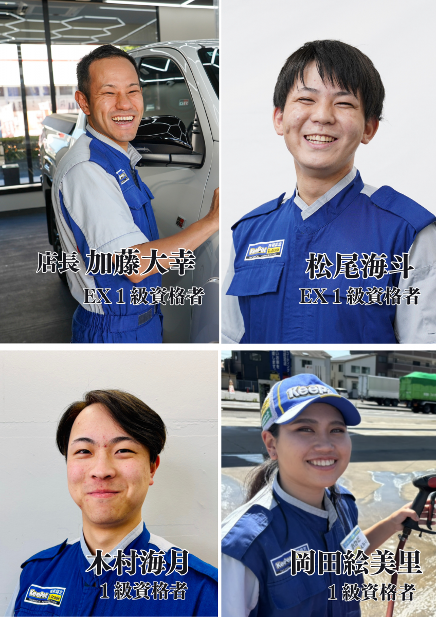 私たちがお客様の大切なお車を 綺麗に長持ちするお手伝いをさせていただきます! 新車でも、長く乗っているお車もお客様の大切なお車に変わりはありません 大切なお車だからこそ綺麗に長く乗っていただきたいと思います! 私たちはkeeperコーテイングの技術認定者の資格も全員が持ち お客様が安心してお車を預けていただけるようにトレーニングもしています 自分の車よりも大事に、丁寧に、、、 お客様の喜んで下さる顔、驚いて下さる顔を思い浮かべながら日々施工しています!! 「ここに任せて良かった」「ここで次もお願いしよう」と 思っていただけるお店を常に意識して行なっています! お客様の大切なお車を是非、私たちに綺麗にさせてください! ご来店、ご相談、いつでもお待ちしています(*^^*)!