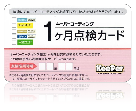 当店でコーティングを施工したお客様には『1ヶ月点検カード』をお渡しします!