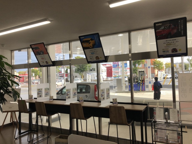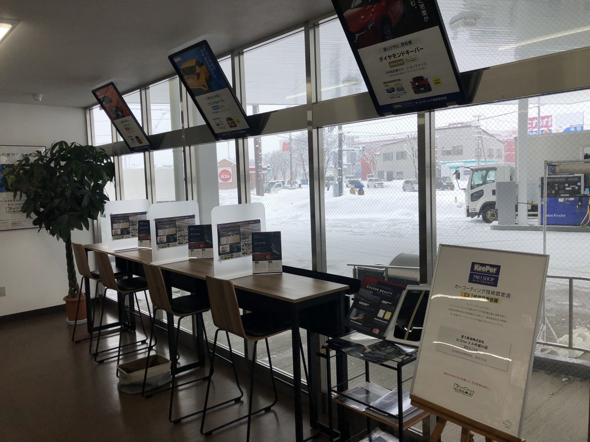 広々とした空間で、ガソリンスタンドではなく、カフェにいるような心地よいゲストルームになっております。 無料コーヒーサービスや雑誌、マンガもございますので、お気軽にお立ち寄り下さい。