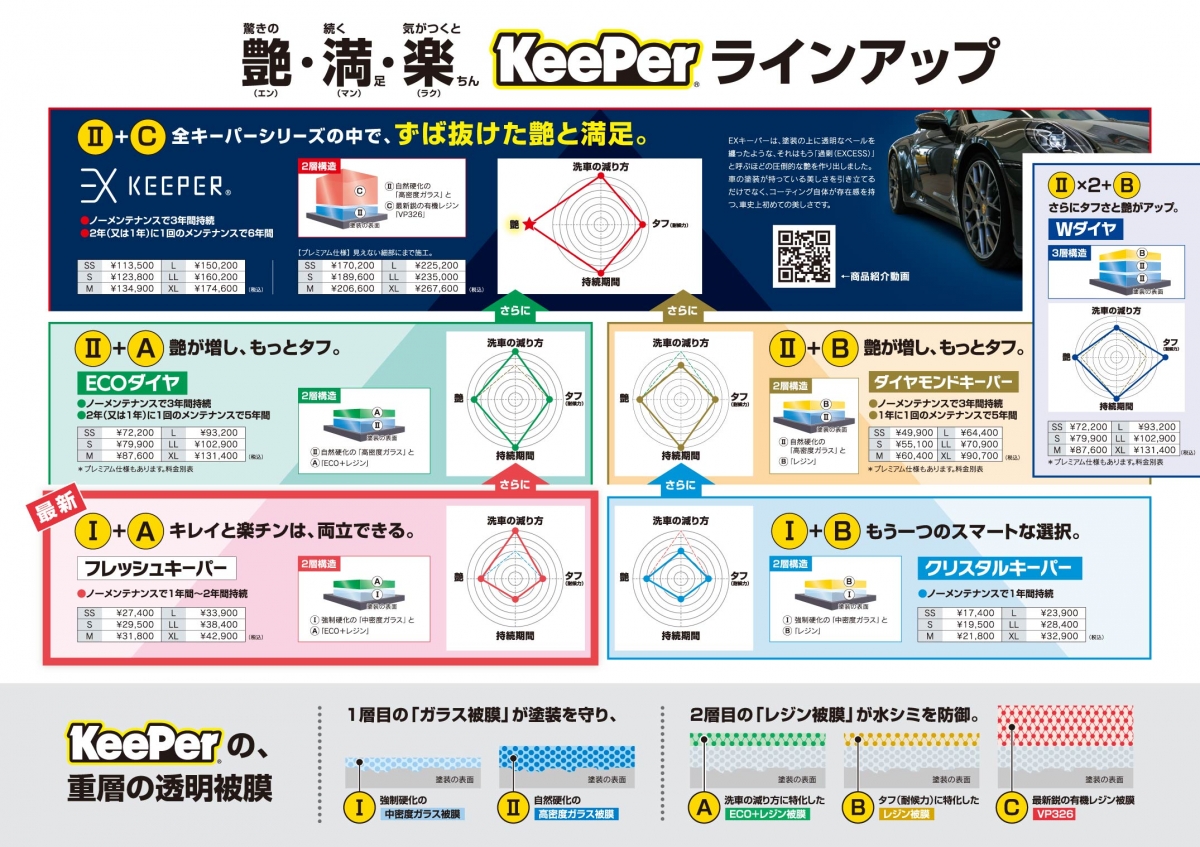 - 当店は、EX KEEPER取扱施工店・キーパープロショップです。最高級カーコーティング 「EXKEEPER」をはじめとする各種コーティング&サイドメニューをラインナップしております。