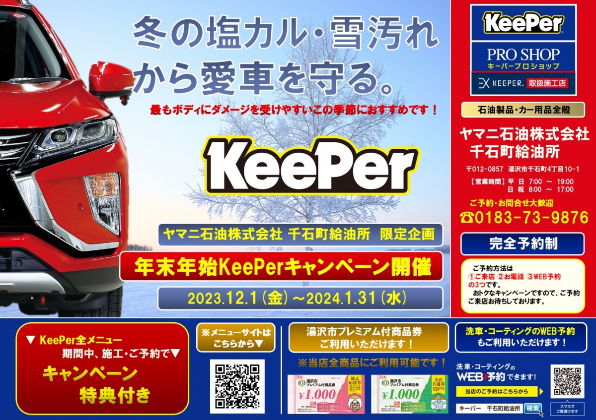 2025年12月1日〜2026年1月31日まで、今年はヤマニ石油株式会社 湯沢給油所・千石町給油所両店舗合同で、年末年始KeePerコーティングキャンペーンを開催いたします!