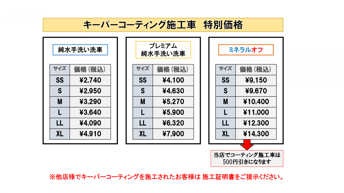 また、洗車、コーティング作業により混雑している場合がございます(特に土日や祝日)。