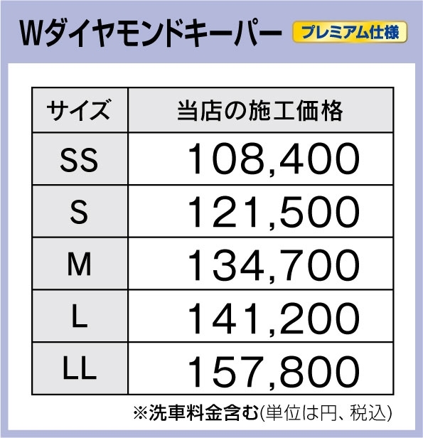 サイズによってコーティング料金が変わりますので、まずは愛車のサイズをご確認ください。