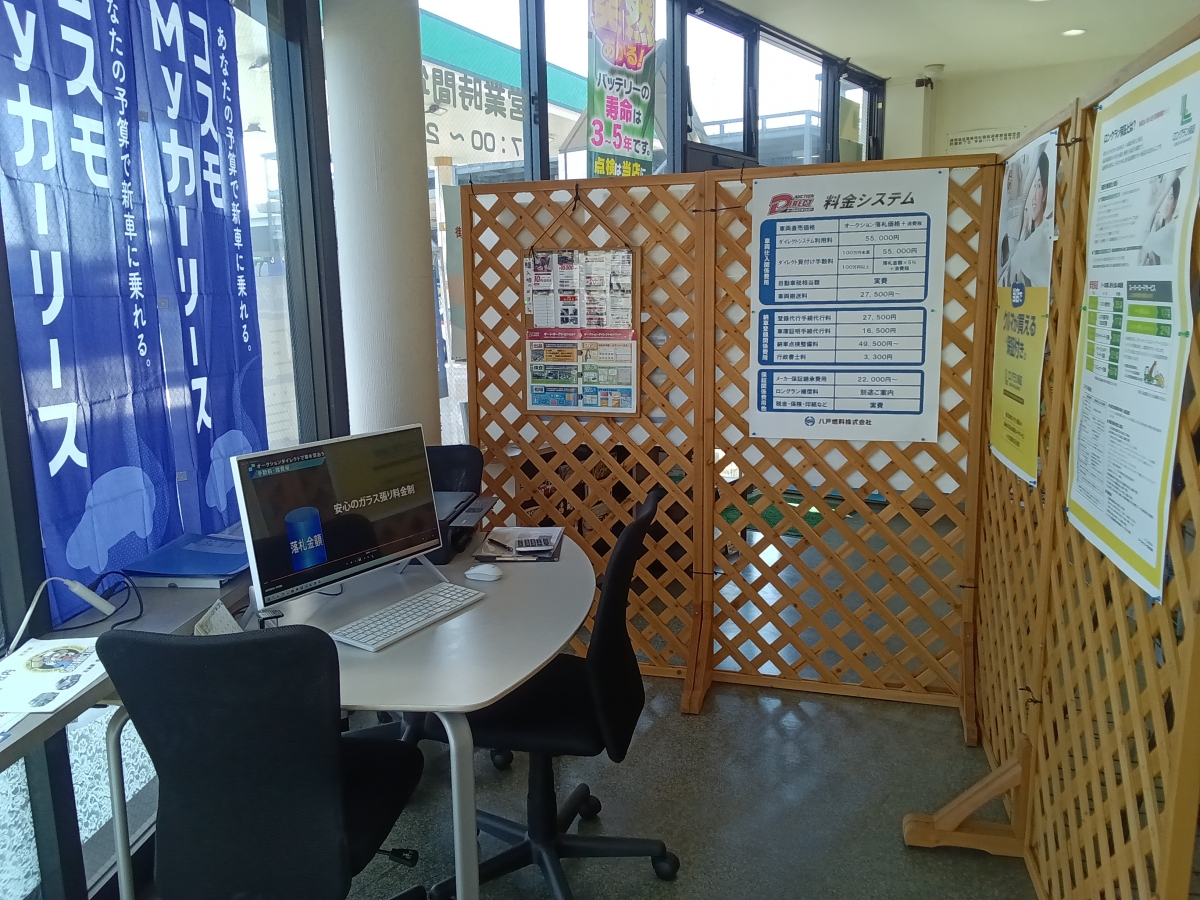 こちらで洗車メニューの説明、受付をします。