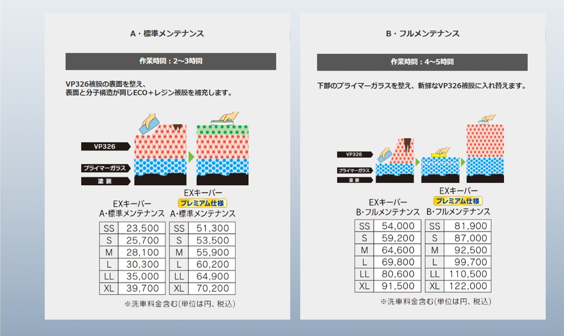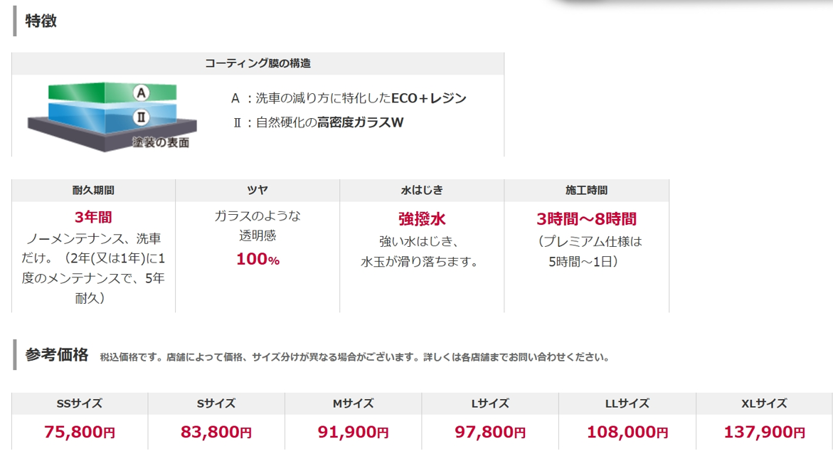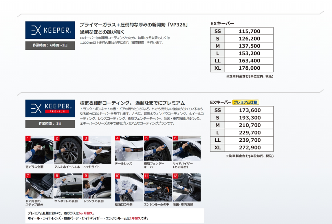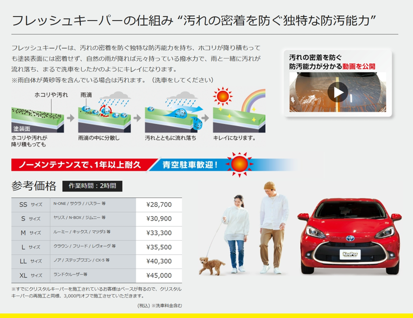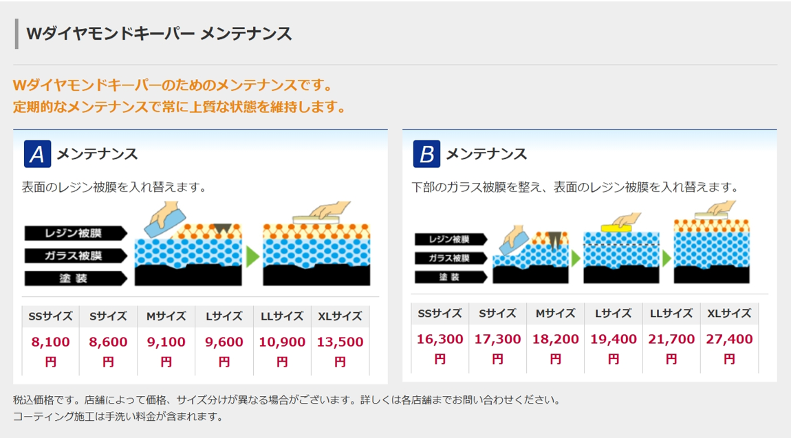 対象コーティング:クリスタルキーパー、フレッシュキーパー、ダイヤモンドキーパー、Wダイヤモンドキーパー、エコダイヤキーパー