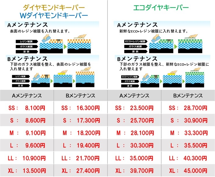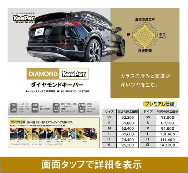 A:当店はkeeperLABOと同じ、お車の体積でサイズわけをさせていただいております。